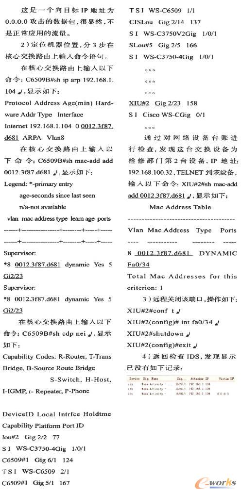 在網絡“星型”結構的核心交換路由器Cisco 6509上,部署了了入侵檢測模塊(IntrusionDetection Systems,IDS)和防火墻模塊,監測經過網絡的核心數據流,一定程度卜實現對流經數據的分辨及流量的局部可視化;監控網絡核心交換路由的非正常流量,建立局部、特定的監控防御機制。