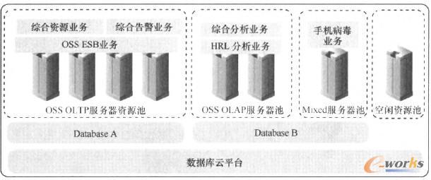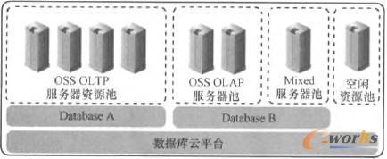 首先基于Exadata構(gòu)建廣東移動(dòng)網(wǎng)絡(luò)運(yùn)維的多個(gè)數(shù)據(jù)庫資源池,分為OLTP型應(yīng)用資源池、OLAP型應(yīng)用資源池、空閑資源池等,如圖10所示。將部分服務(wù)器劃分在各個(gè)對(duì)應(yīng)的資源池內(nèi)。