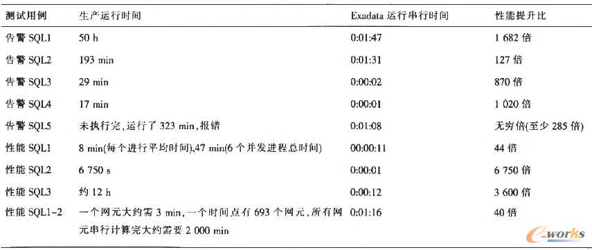 經(jīng)過實(shí)際測(cè)試,基于現(xiàn)網(wǎng)真實(shí)數(shù)據(jù)和應(yīng)用,測(cè)試Exadata數(shù)據(jù)庫云平臺(tái)的多/直ffi(0LTP+0LAP),性能提升從44倍到6 750倍。原來數(shù)小時(shí)的大作業(yè)類似于OLAP,目前只需要幾秒鐘完成,基本都提高了上千倍。原來大量循環(huán)+游標(biāo)類似于OLTP的存儲(chǔ)過程也有“倍和127倍的提高,見表1。