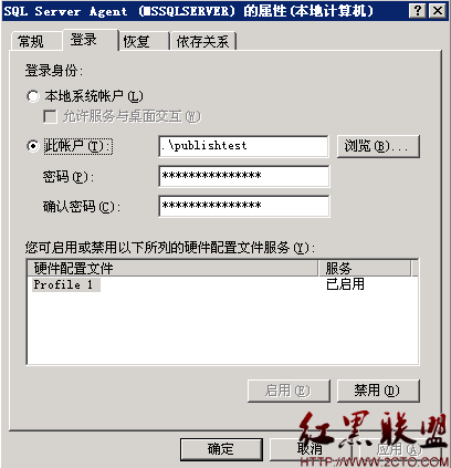 同服務(wù)器端設(shè)置一樣,設(shè)置publishtest登錄SQL Server Agent權(quán)限。