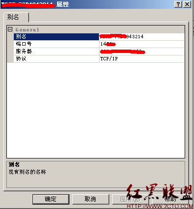 建立服務(wù)器端別名。在SQL Server配置管理中,點(diǎn)“SQL Native Client配置”-> “別名”,新建別名,名稱填寫服務(wù)器的名稱,端口和服務(wù)器地址根據(jù)實(shí)際情況填寫,如下圖: