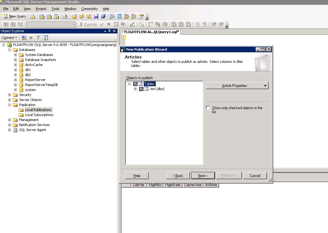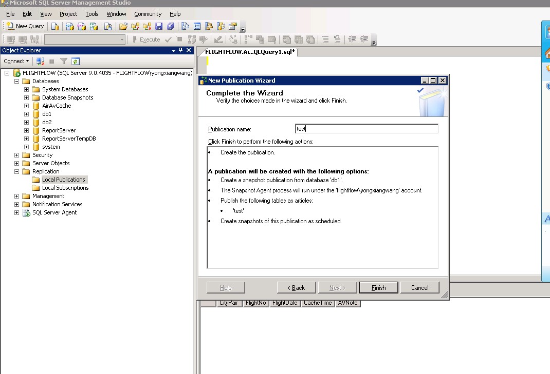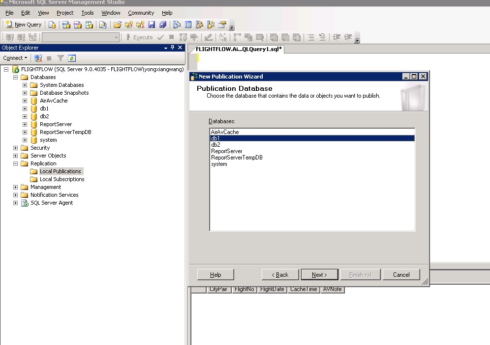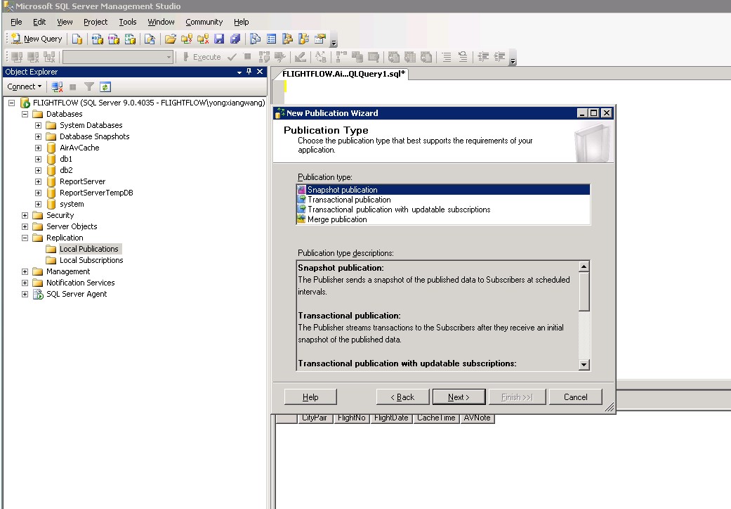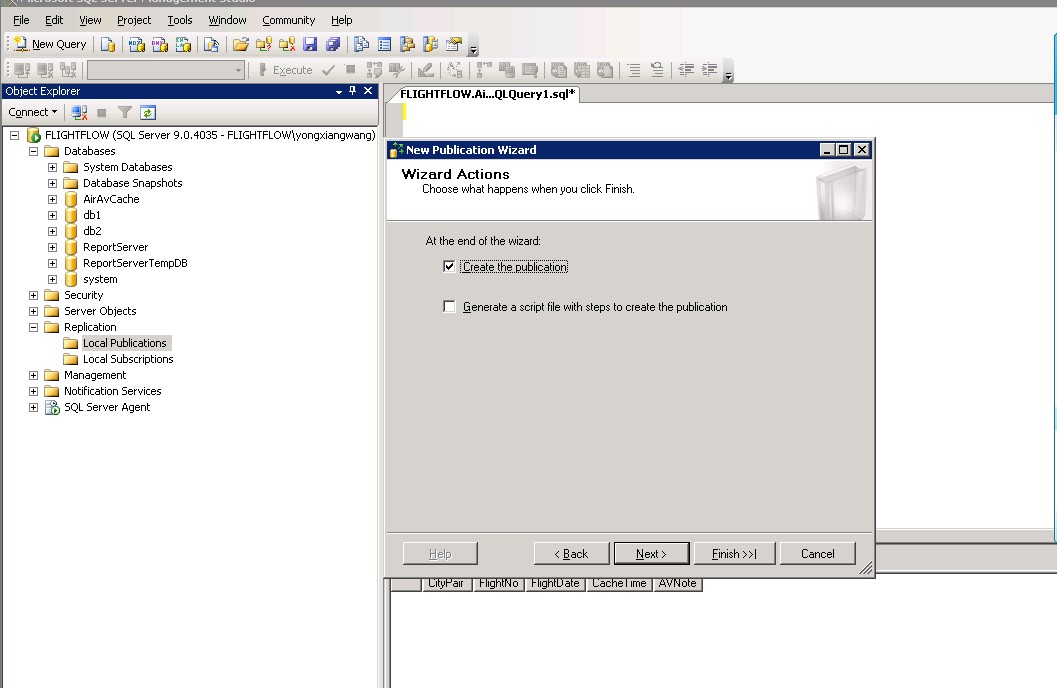3.創建一個發布。即將需要的數據庫及對象發布出來。