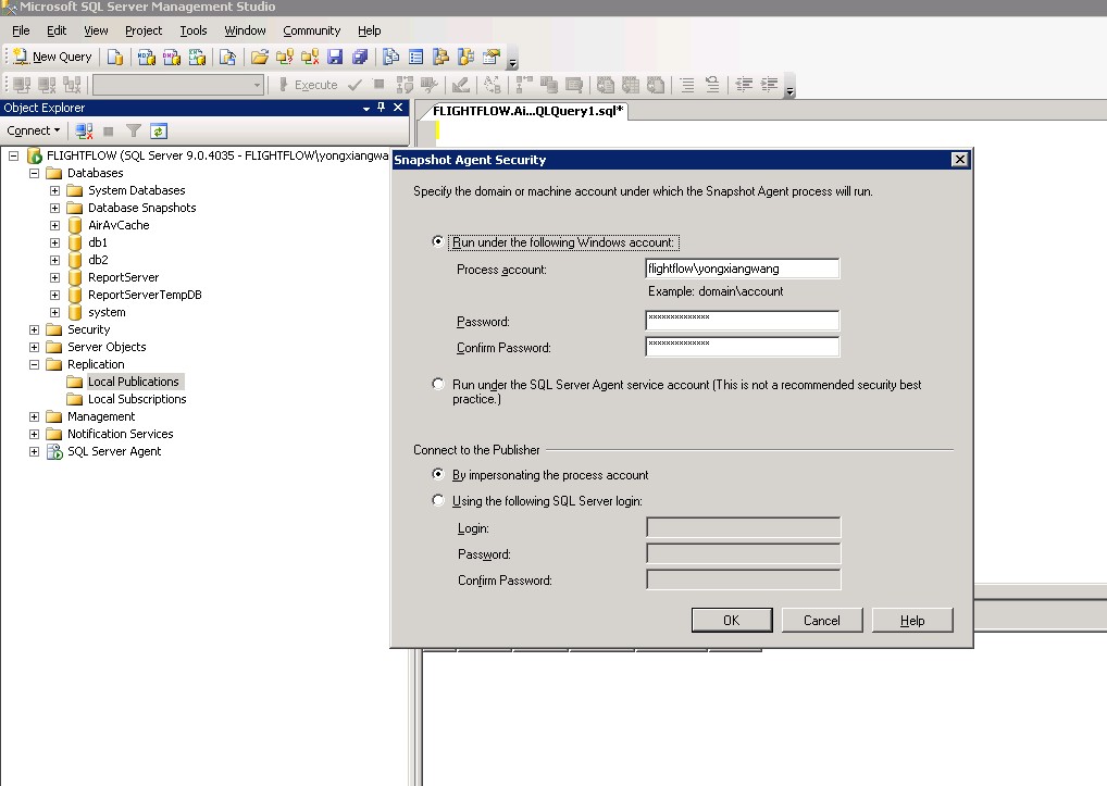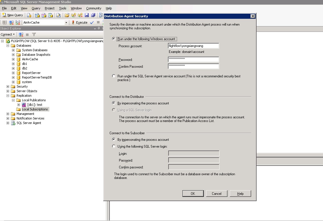 5.設置復制代理及安全,即指定可以運行代理的用戶帳號。