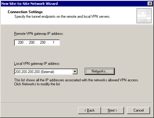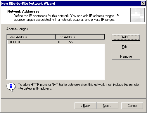 點擊Next,在下一個屏幕中,加入遠程VPN網絡的地址集: