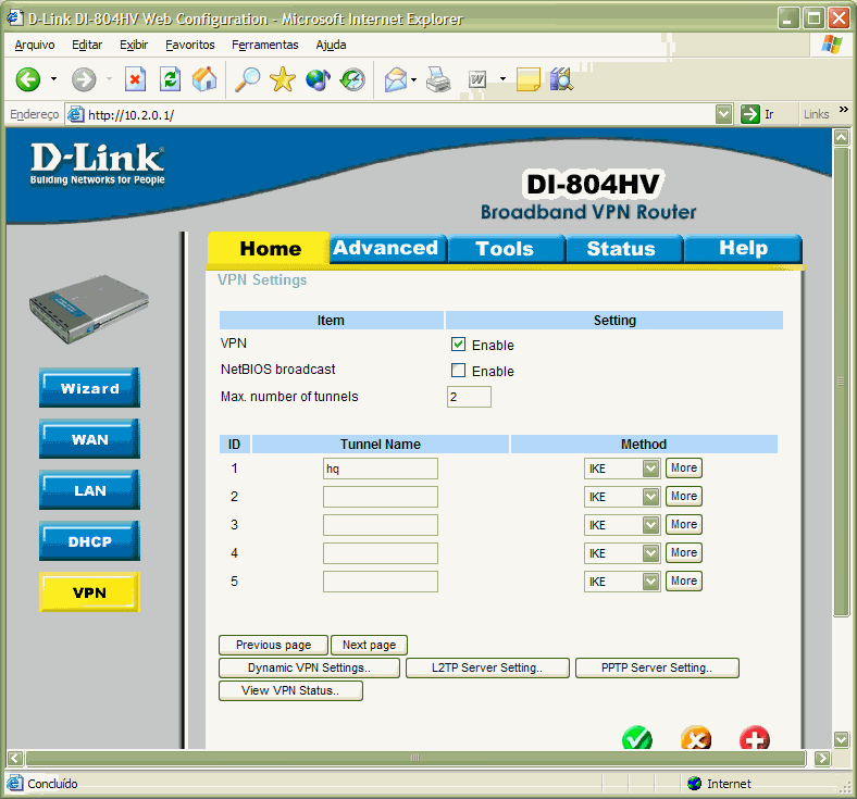 點擊“Home”,再點擊“VPN”。啟用VPN,然后為你的隧道設置一個名字,這個VPN路由器最大可以同時支持50個隧道!
