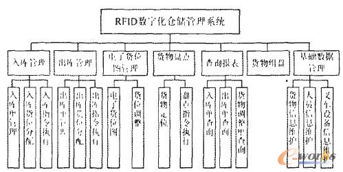 基于RFID的數字化倉庫管理系統功能的是對傳統倉庫管理系統的功能實現和擴展,包括以下功能:入庫管理、電子貨位管理、出庫管理、貨物組盤等。系統總體結構如圖1所示。