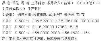 各包裝車間每月在月底出具庫存報(bào)表時(shí),需知道每種貨物:結(jié)存(指已結(jié)算)、未結(jié)賬(未結(jié)算)、實(shí)存(結(jié)存數(shù)+未結(jié)賬數(shù)),見圖: