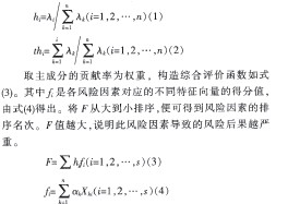 由處理后形成的相關(guān)矩陣求出其n個非負特征值并將其從大到小排序.計算特征值的單位特征向量d。。根據(jù)主成分貢獻率的大小選取前s個主要的專家評分構(gòu)造綜合評價函數(shù)。確定s的方法是前s個主成分所包括的原始變量的信息達到一定的比例。此比例稱為累計貢獻率,一般達到85%即可。主成分的貢獻率按式(1)可得出,累計貢獻率按式f2可得出。