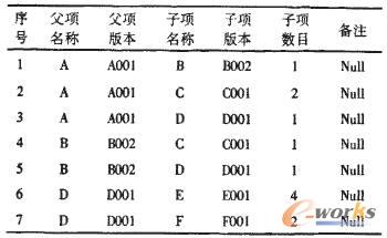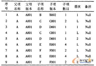 3)雖然定義了子件的層次關(guān)系,但是并沒有記錄它屬于哪一個父層,因此,不能反查出某零部件的上一層父件,只能查出它屬于哪個產(chǎn)品,無法清晰地顯示產(chǎn)品的樹型結(jié)構(gòu)。