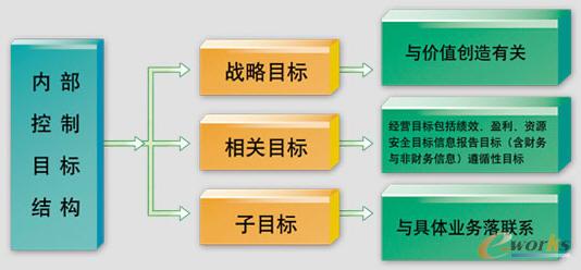 1992的COSO報告將控制目標確立為三個方面:財務信息的可靠性、經營活動的效率和效果、相關法律法規的遵循性,1994年的COSO報告《風險管理——整合框架》擴展了內部控制目標結構,具體構成如下: